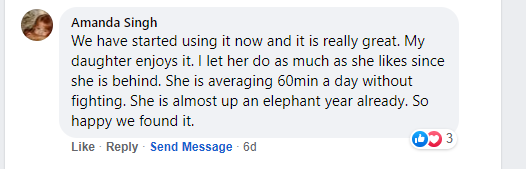 ...She is averaging 60min a day without fighting...